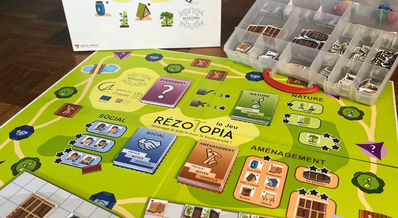 Ce jeu fait partie d’une mallette pédagogique développée dans le cadre du programme RézoTopia (réseau d’îlots-jardins de biodiversité en toiture).