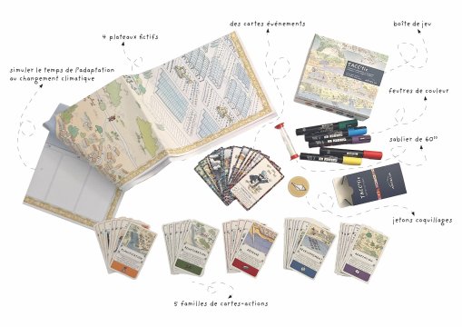 Le but du jeu est d’esquisser, par groupes de 8 à 10 joueurs, un enchaînement logique d’actions à court, moyen et long terme pour s’adapter au changement climatique. Ces actions sont dessinées sur le plateau pour proposer une stratégie spatialisée.
